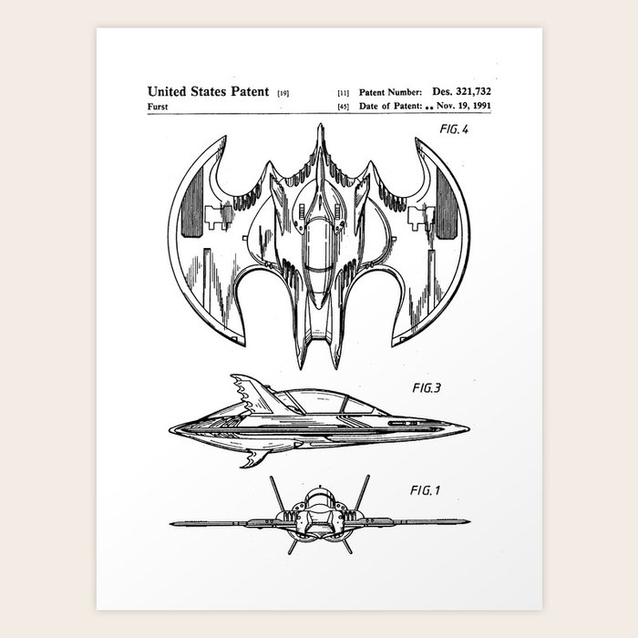 Batwing Patent Bat Wing Art Black And White Art Print By