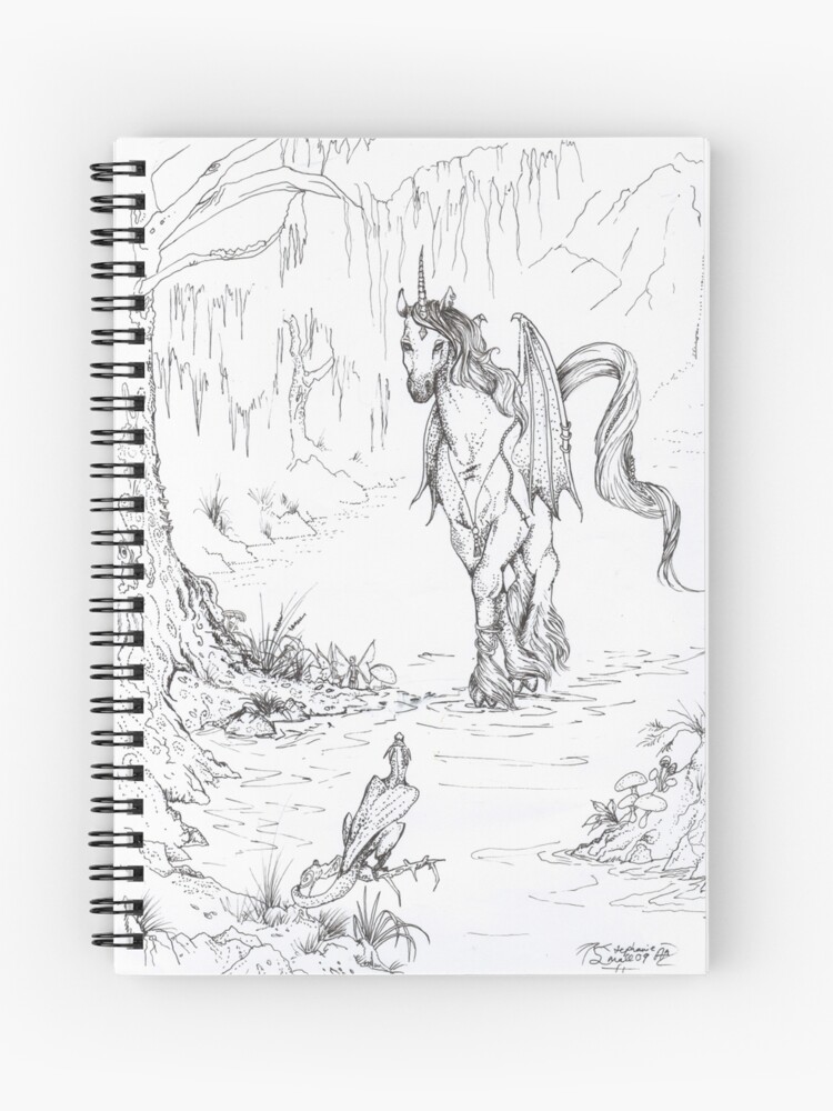Pen And Ink Unicorn Pegacorn Bat Wings Dragon Spiral Notebook By