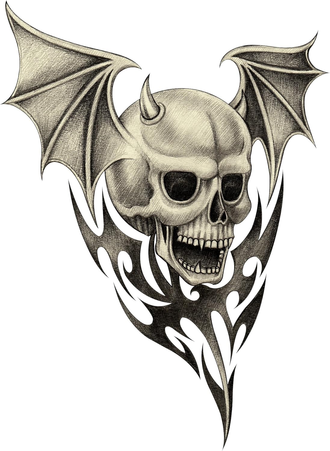 Amazon Com Disembodied Skull With Menacing Bat Wings Temporary